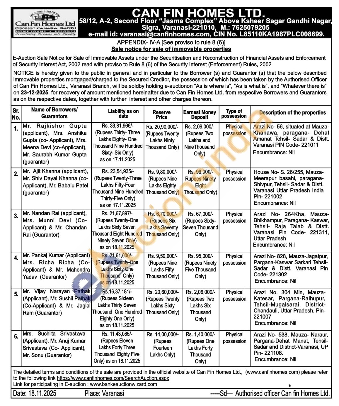Arazi No- 264Kha, Mauza-Bhikhampur, Paragana- Kaswar, Tehsil- Raja Talab & Distt. Varanasi Pin Code- 221311, Uttar Pradesh Encumbrance: Nil