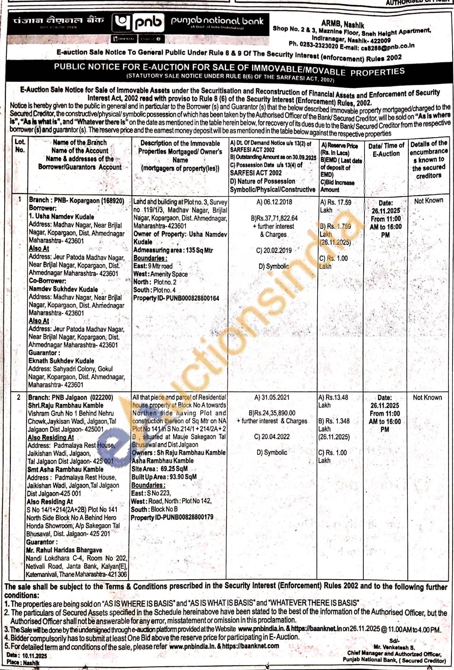 Land and building at Plot no. 3, Survey no 119/1/3, Madhav Nagar, Brijlal Nagar, Kopargaon, Dist. Ahmednagar, Maharashtra-423601 Owner of Property: Usha Namdev Kudale