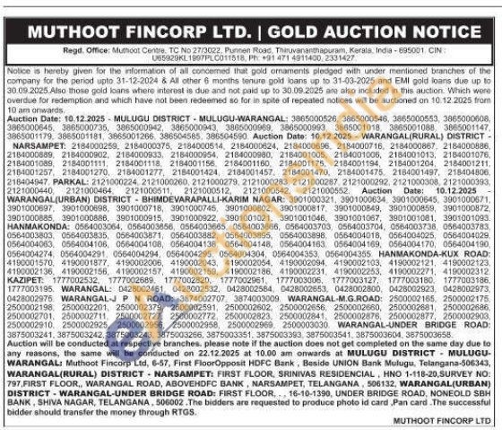Muthoot Fincorp Ltd Gold Auctions Auction in Warangal