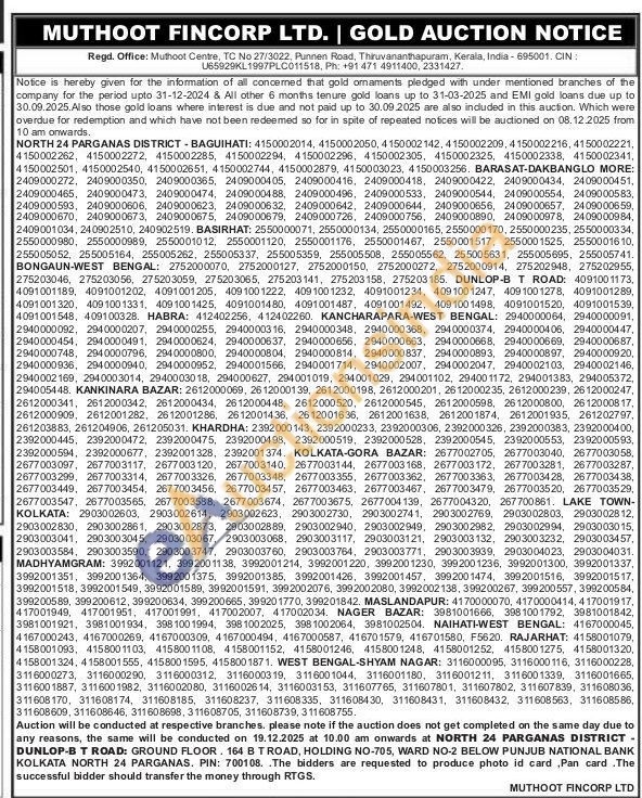 Muthoot Fincorp Ltd Gold Auctions Auction in Kolkata