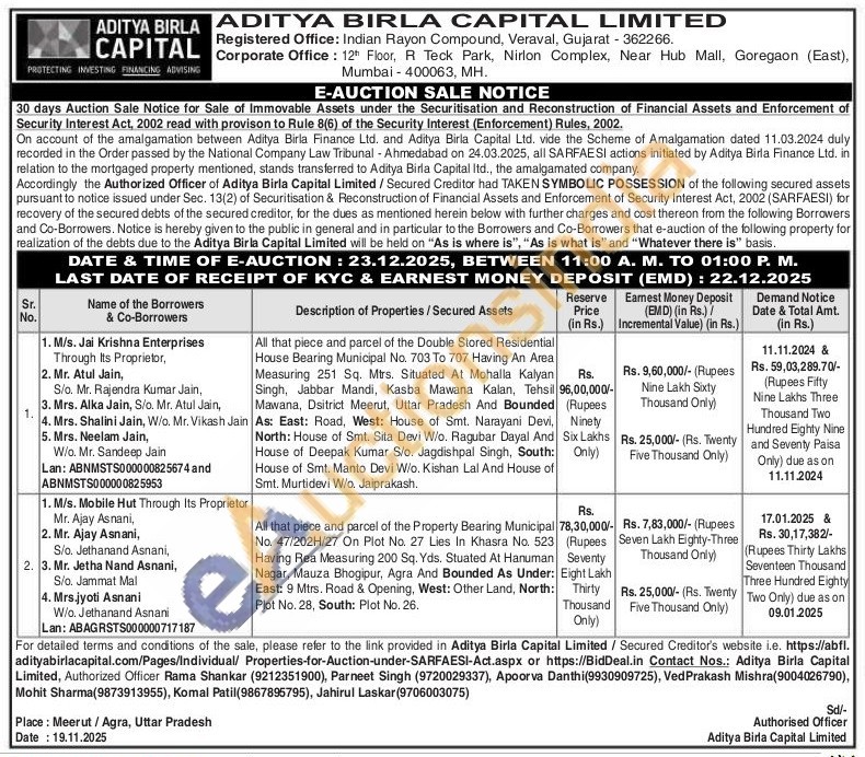 All that piece and parcel of the Double Stored Residential House Bearing Municipal No. 703 To 707 Having An Area Measuring 251 Sq. Mtrs. Situated At Mohalla Kalyan Singh, Jabbar Mandi, Kasba Mawana Kalan, Tehsil Mawana, Dsitrict Meerut, Uttar Pradesh And Bounded As: East: Road, West: House of Smt. Narayani Devi, North: House of Smt. Sita Devi W/o. Ragubar Dayal And House of Deepak Kumar S/o. Jagdishpal Singh, South: Only) House of Smt. Manto Devi W/o. Kishan Lal And House of Smt. Murtidevi W/o. Jaiprakash.