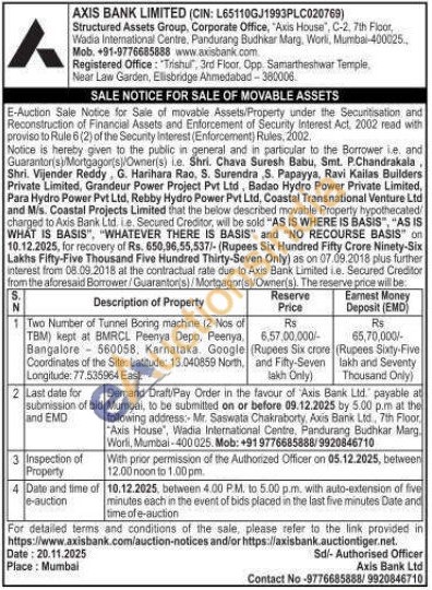Two Number of Tunnel Boring machine (2 Nos of TBM) kept at BMRCL Peenya Depo, Peernya, Bangalore 560058, Karnataka. Google Coordinates of the Site: Latitude: 13.040859 North, Longitude: 77.535964 East