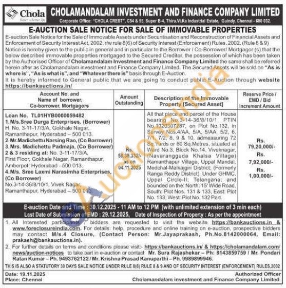 All that piece and parcel of the House bearing No 3-14-36/8/10/1, PTIN No. 1020307287, on Plot No.132, in Survey Nos. 4/AA, S/A, 5/AA, 5/2, 6, 7/1, 7/2, 8, 9 & 10, admeasuring 72 Sq. Yards or 60 Sq.Metres, situated at Ward No. 3. Block No. 14, Viveknagar, (Navarangguda Khalsa Village) Ramanthapur Village, Uppal Mandal, Medchal-Malkajgiri District (Formerly Ranga Reddy District); Under GHMC. Uppal Circle-II, Telangana, and bounded on the: North: 15' Wide Road, South: Plot Nos. 131 & 133, East Plot No. 133, West: Plot No. 132 Part.
