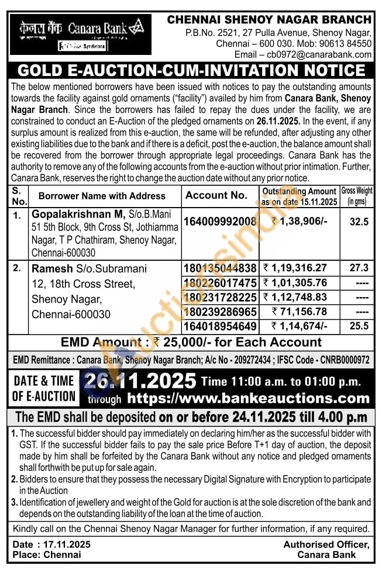 Contact Mob: 90613 84550 Email-cb0972@canarabank.com