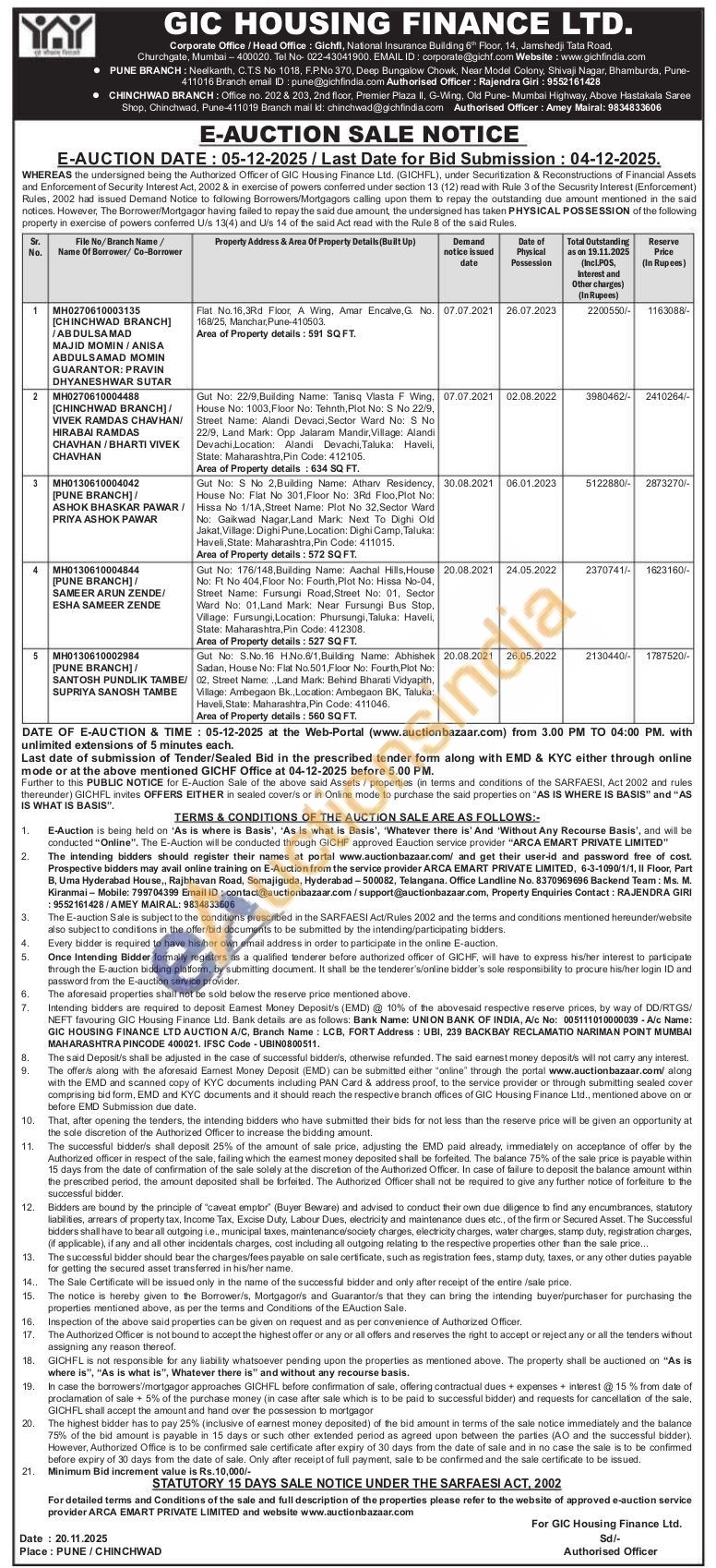 Flat No.16,3Rd Floor, A Wing, Amar Encalve, G. No. 168/25, Manchar, Pune-410503. Area of Property details: 591 SQ FT