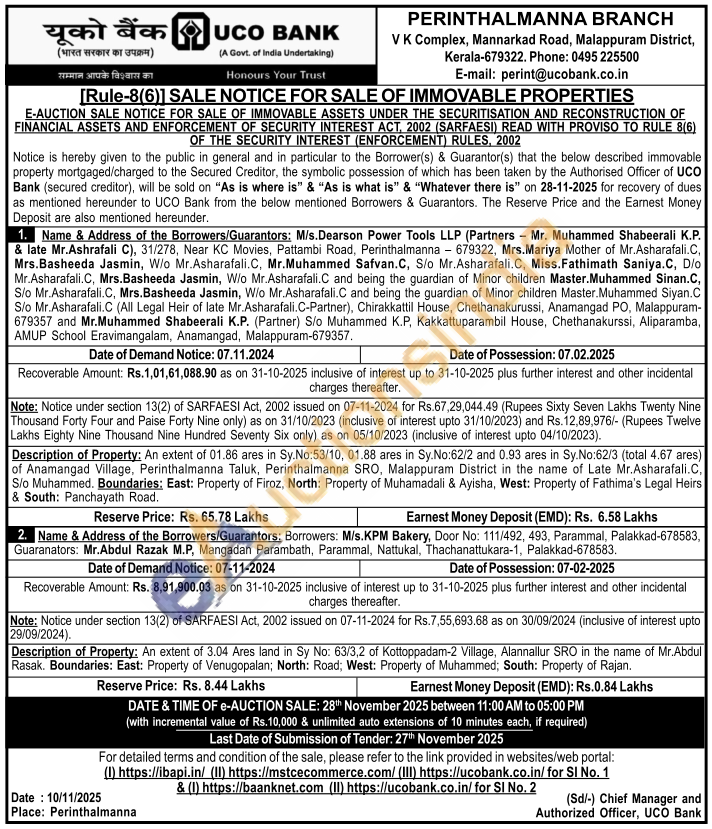 An extent of 01.86 ares in Sy.No:53/10, 01.88 ares in Sy.No:62/2 and 0.93 ares in Sy.No:62/3 (total 4.67 ares) of Anamangad Village, Perinthalmanna Taluk, Perinthalmanna SRO, Malappuram District in the name of Late Mr.Asharafali.C, S/o Muhammed. Boundaries: East: Property of Firoz, North: Property of Muhamadali & Ayisha, West: Property of Fathima's Legal Heirs & South: Panchayath Road.