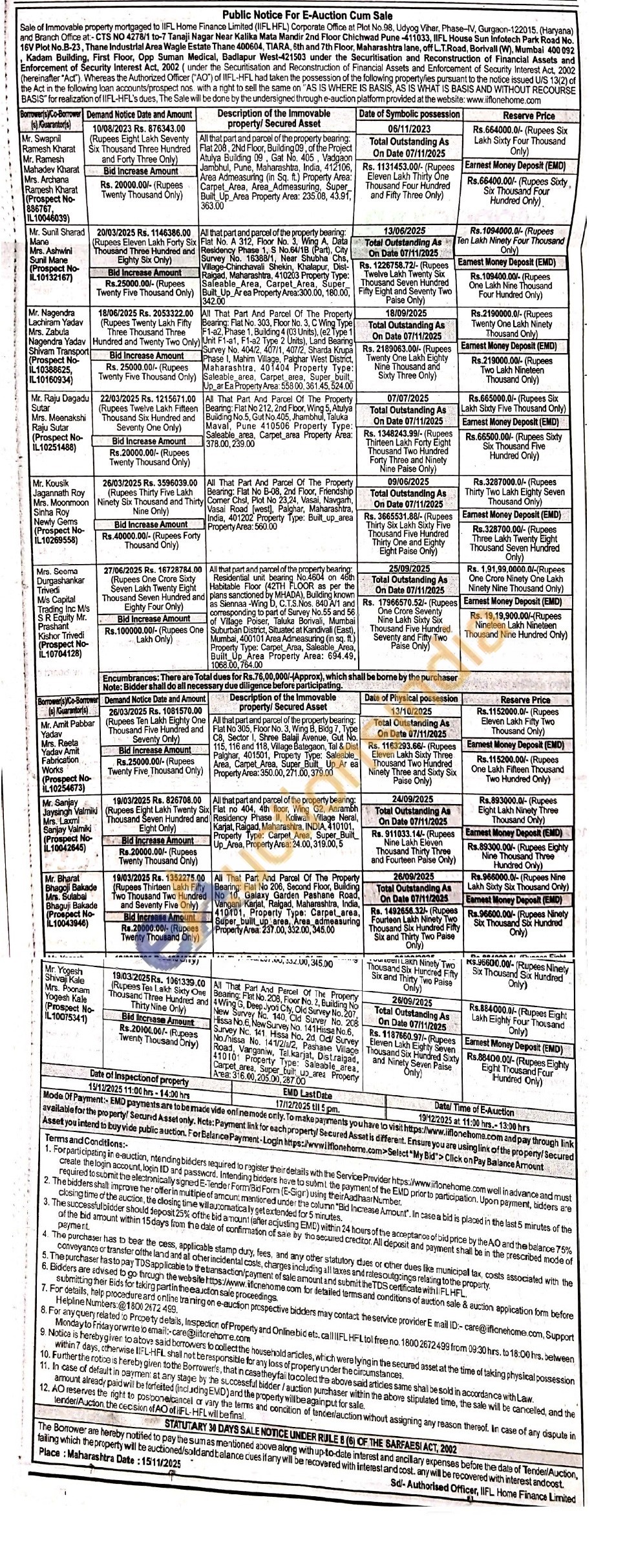 All that part and parcel of the property bearing: Flat No 305, Floor No. 3, Wing B, Bldg 7, Type C8, Sector 1, Shree Balaji Avenue, Gut No. 115, 116 and 118, Village Bategaon, Tal & Dist Palghar, 401501, Property Type: Saleable Area, Carpet Area, Super Built Up Area Property Area: 350.00, 271.00, 379.00