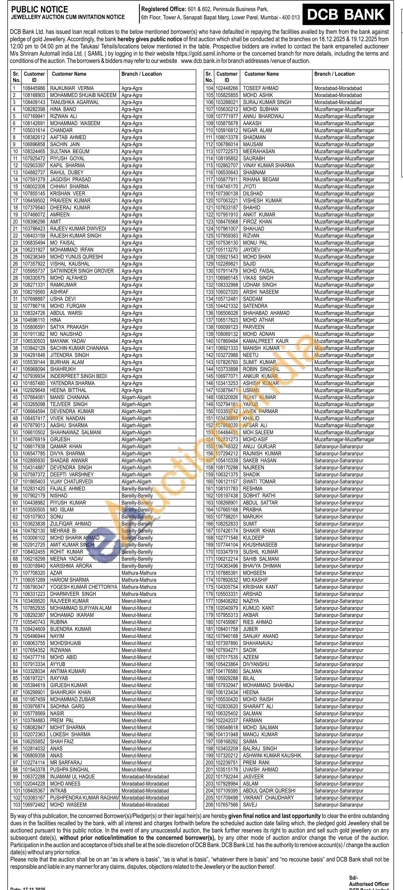 DCB Bank Gold Auctions Auction in Agra