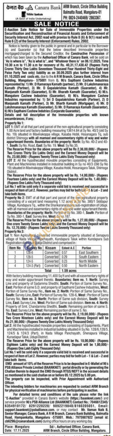 Lot 2: All the hypothecated movable properties consisting of Equipments, Plant and Machineries installed in industrial building situated in Sy.No. 128/6,128/5, 124/5 & 124/3 (Part), in Nada Village Panchayath, Shenapura Village, Kunadapur Taluk, Udupi District