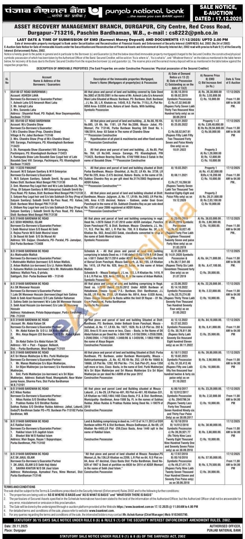 Contact No ; Mr. Ashok Kumar (Chief Manager) Mob: 9102405790