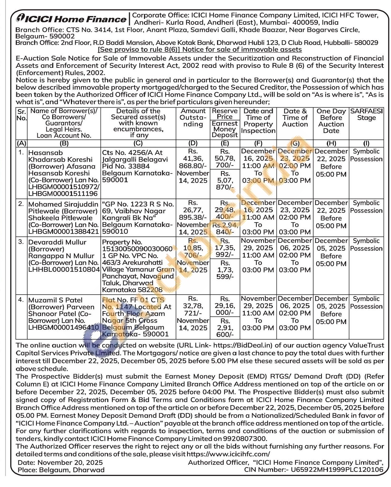 contact ICICI Home Finance Company Limited on 9920807300