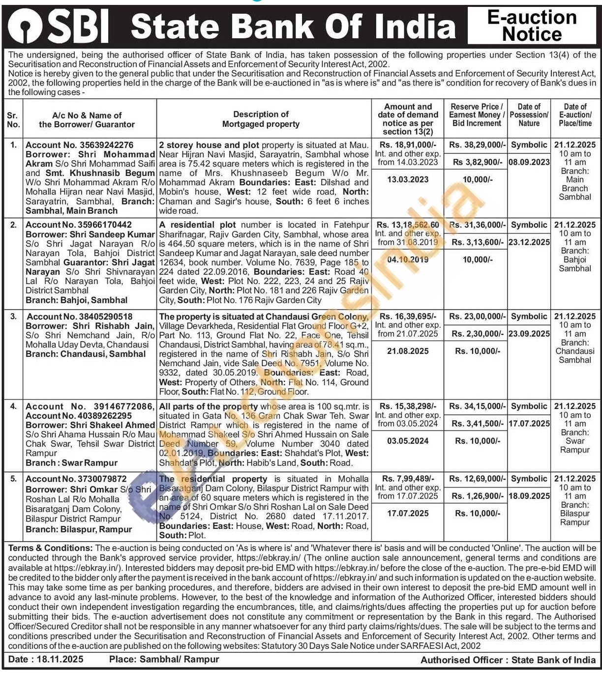 2) A residential plot number is located in Fatehpur Sharifnagar, Rajiv Garden City, Sambhal, whose area is 464.50 square meters, which is in the name of Shri Sandeep Kumar and Jagat Narayan, sale deed number 12634, book number. Volume No. 7639, Page 185 to 224 dated 22.09.2016, Boundaries: East: Road 40 ifeet wide, West: Plot No. 222, 223, 24 and 25 Rajiv Garden City, North: Plot No. 181 and 226 Rajiv Garden City, South: Plot No. 176 Rajiv Garden City