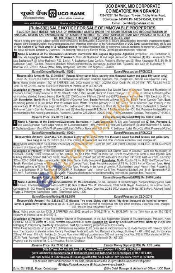 in the Registration District of Tiruchirappall, in the Sub Registration District of Thuvarankuruchi, Paluvanji, Ayan Punjai SF no 267/8, extent of 0.14:00 hectares equivalent to 35 cents. Bounded on: West by: South North cart track. North by: Punjai land belonging to Pariyasamy, South by: Poromboke, East by: Remaining properties of S Ponnusamy Within these boundaries an extent of 0.08.0 hectares equivalent to 20 cents and all improvements to be made thereon with marncol right of way. The property is situates within Palvanji Panchayat limits and with Two Residential buildings. Building 1-GF-1200 sqft. Portico area 205 sqft FF area 1610 sqft. Buliding 2-Ground Floor area 645 sqh, portico ares-205 sqft bearing Door Nos. 2:23 & 2/23A situated at SF No. 28718 (Part), Paluvanji (West) Village & Panchayat, Manapparal Taluk, Tiruchimpali Dt 621305