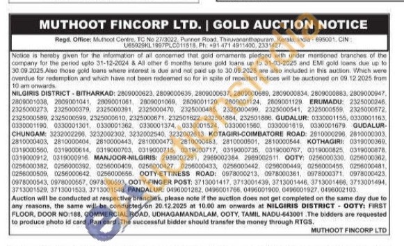 Muthoot Fincorp Ltd Gold Auctions Auction in Nilgiris