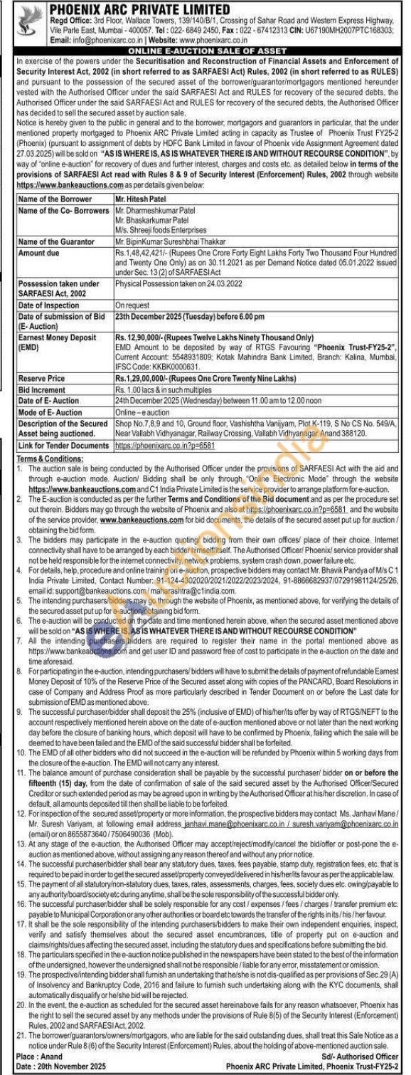 Shop No.7,8,9 and 10, Ground floor, Vashishtha Vanijyam, Plot K-119, S No CS No. 549/A, Near Vallabh Vidhyanagar, Railway Crossing, Vallabh Vidhyanagar, Anand 388120
