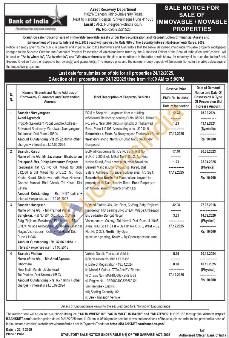 EQM of Shop No.1, at ground floor in building atShivlaxmi Residency, bearing Sr.No. 850/2A, Milkat No. 2475, Near GRP Sabnis Highschool, Thakarwadi Road, Pune-410405. Ameasuring area:-300 Sq.ft. Boundaries:- East:- By Narayangaon Thakarwadi Road Compound West:-By Parking North:-By Shop No. 2 South:-By