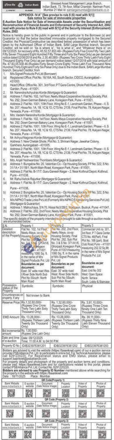 Property 3 : Commercial Unit no. 301. 3rd floor, PT Gera Center, CTS No. 46(Part), Final Plot No. 168 (part). Boat Club Road Pune 411001 measuring 252.32 Sq.Mt. in the name of M/s Signet Products Pvt. Ltd