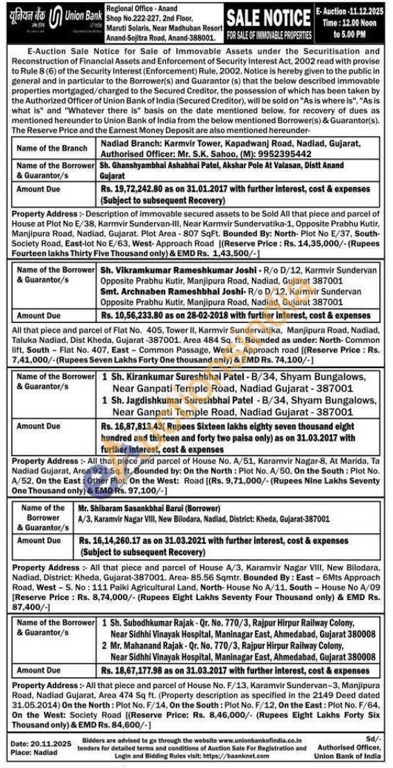 House at Plot No E/38, Karmvir Sundervan-III, Near Karmvir Sundervatika-1, Opposite Prabhu Kutir, Manjipura Road, Nadiad, Gujarat. Plot Area-807 SqFt. Bounded By: North- Plot No E/37, South-Society Road, East-lot No E/63, West-Approach Road