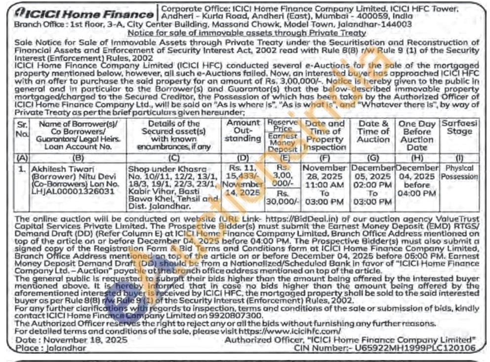 Shop under Khasra No. 10//11, 12/2, 13/1, 18/3, 19/1, 22/3, 23/1, Kabir Vihar, Basti Bawa Khel, Khel, Tehsil Tehs and Dist. Jalandhar.