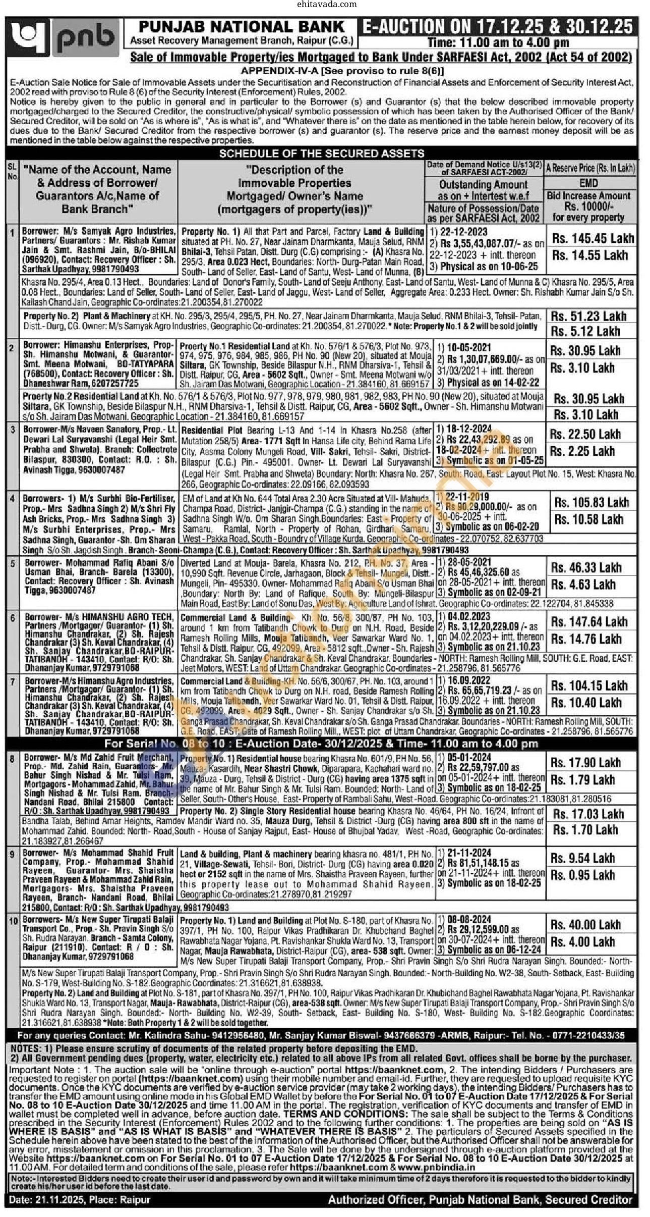 EM of Land at Kh No. 644 Total Area 2.30 Acre Situated at Vill- Mahuda, Champa Road, District- Janjgir-Champa (C.G.) standing in the name of Sadhna Singh W/o. Om Sharan Singh. Boundaries: East - Property of Samaru, Ramlal, North Property of Rohan, Girdhari, Samaru, West-Pakka Road, South-Boundry of Village Kurda. Geographic Branch-Seoni-Champa (C.G.), Contact: Recovery Officer: Sh. Sarthak Upadhyay, 9981790493