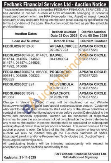 Fedbank Financial Services Ltd Gold Auctions Auction in Mumbai