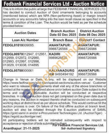 Fedbank Financial Services Ltd Gold Auctions Auction in Anantapur