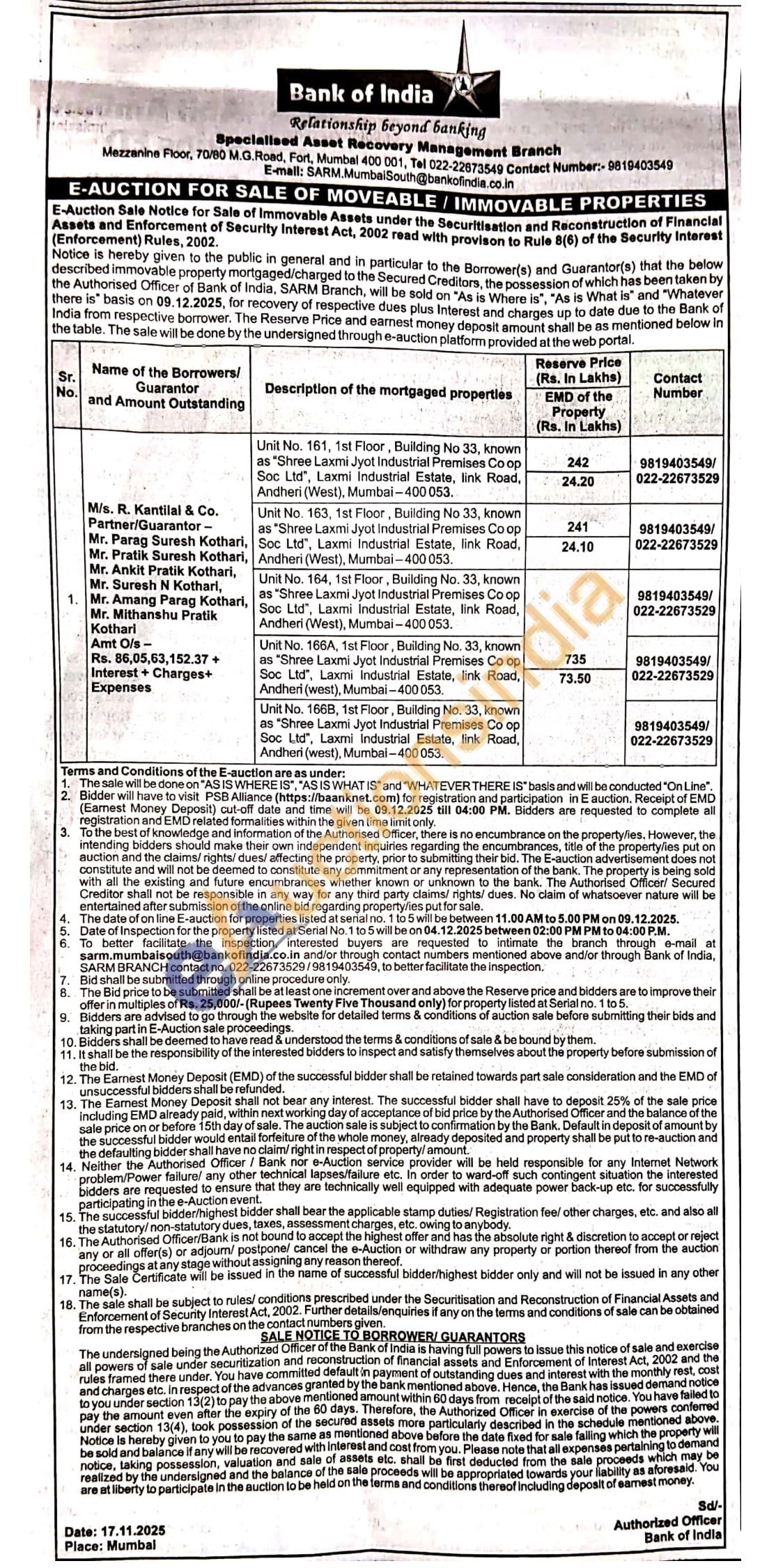 Contact Mob No : 9819403549/022-22673529