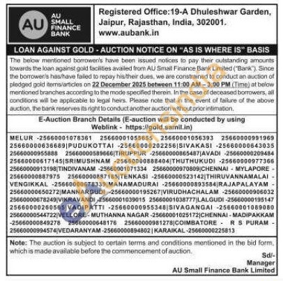 AU Small Finance Bank Gold Auctions Auction in Sivaganga