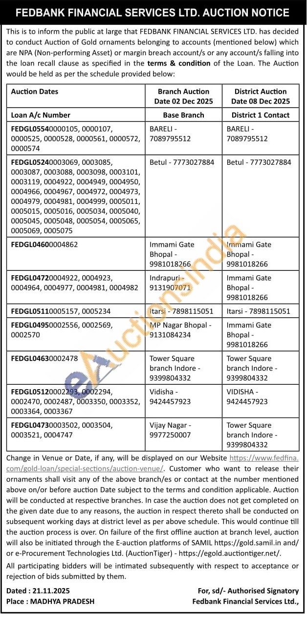 Fedbank Financial Services Ltd Gold Auctions Auction in Bareilly