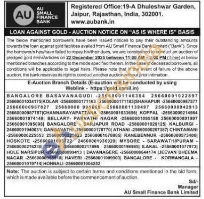 AU Small Finance Bank Gold Auctions Auction in Bengaluru