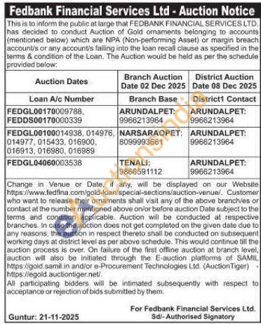 Fedbank Financial Services Ltd Gold Auctions Auction in Guntur