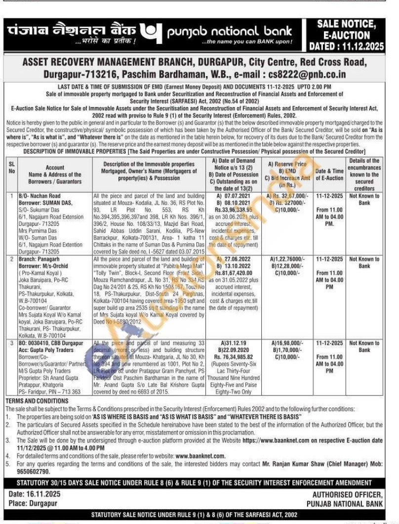 All the piece and parcel of the land and building of Immovable property situated at "Pabitra Mega Mall" "Tolly Twin", Block-1, Second Floor (Front Side), Mouza Ramchandrapur, JL No 31, RS No 334,RS Dag No 24/201 & 25, RS Kh No 1508&167, Touzi No 18. PS-Thakurpukur, Dist-South 24 Parganas, Kolkata-700104 having covered area-1950 sqft and super build up area 2535 sq ft standing in the name of Mrs Sujata koyal Wio Kamal Koyal covered by Deed No 1-5880/2012