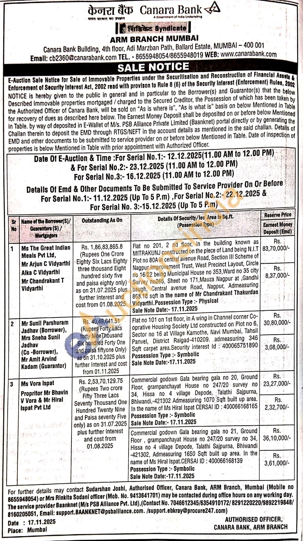 Commercial godown Gala bearing gala no 20, Ground Floor, grampanchayat House no 247/20 survey no 34, Hissa no 4 village Depode, Talathi Sajpurna, Bhiwandi,-421302 Admeasuring 1070 Sqft built up area. In the name of Ms Hiral Ispat CERSAI ID: 400066168165 Possession Type: Symbolic Sale Note Date:- 17.11.2025