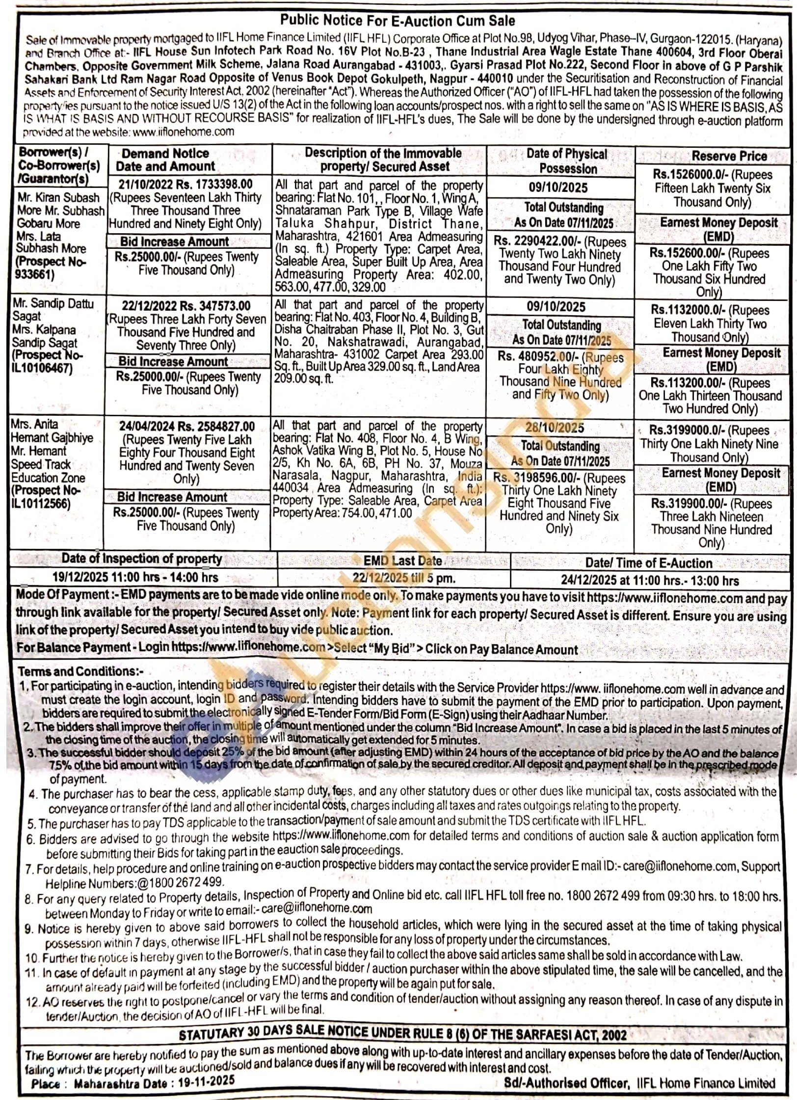 All that part and parcel of the property bearing: Flat No. 101,, Floor No. 1, Wing A, Shnataraman Park Type B, Village Wafe Taluka Shahpur, District Thane, Maharashtra, 421601 Area Admeasuring (In sq. ft.) Property Type: Carpet Area, Saleable Area, Super Built Up Area, Area Admeasuring Property Area: 402.00, 563.00, 477.00, 329.00