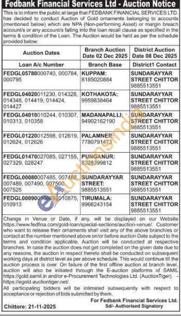 Fedbank Financial Services Ltd Gold Auctions Auction in Chittoor