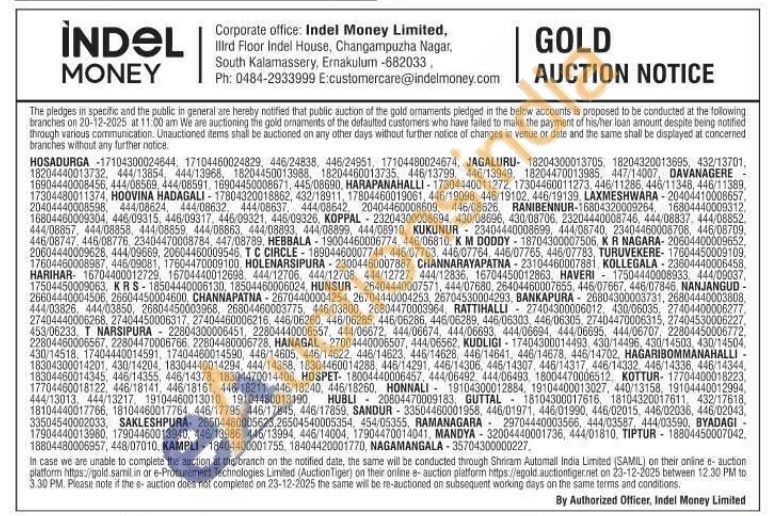 Indel money ltd Gold Auctions Auction in Davanagere