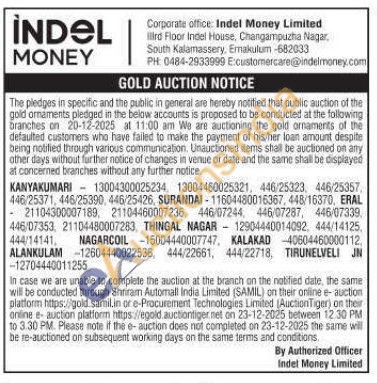 Indel money ltd Gold Auctions Auction in Kanyakumari