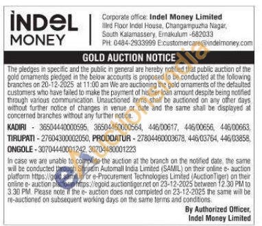 Indel money ltd Gold Auctions Auction in Ongole
