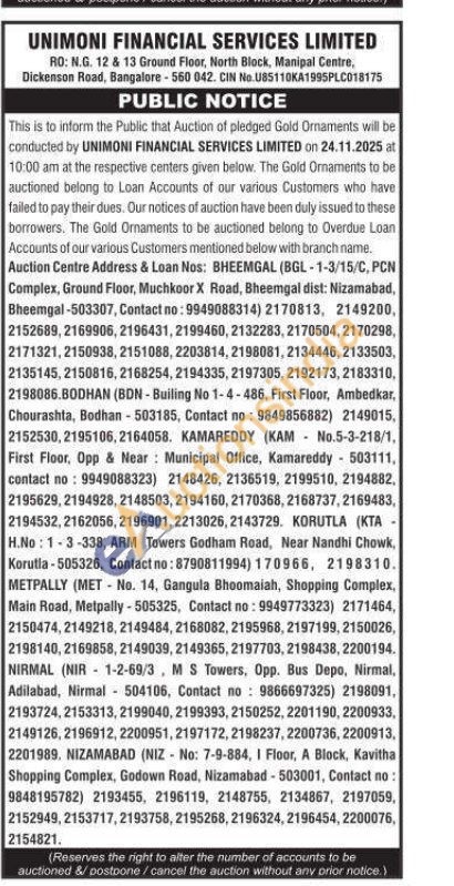 Unimoni Financial Services Limited Gold Auctions Auction in Nizamabad