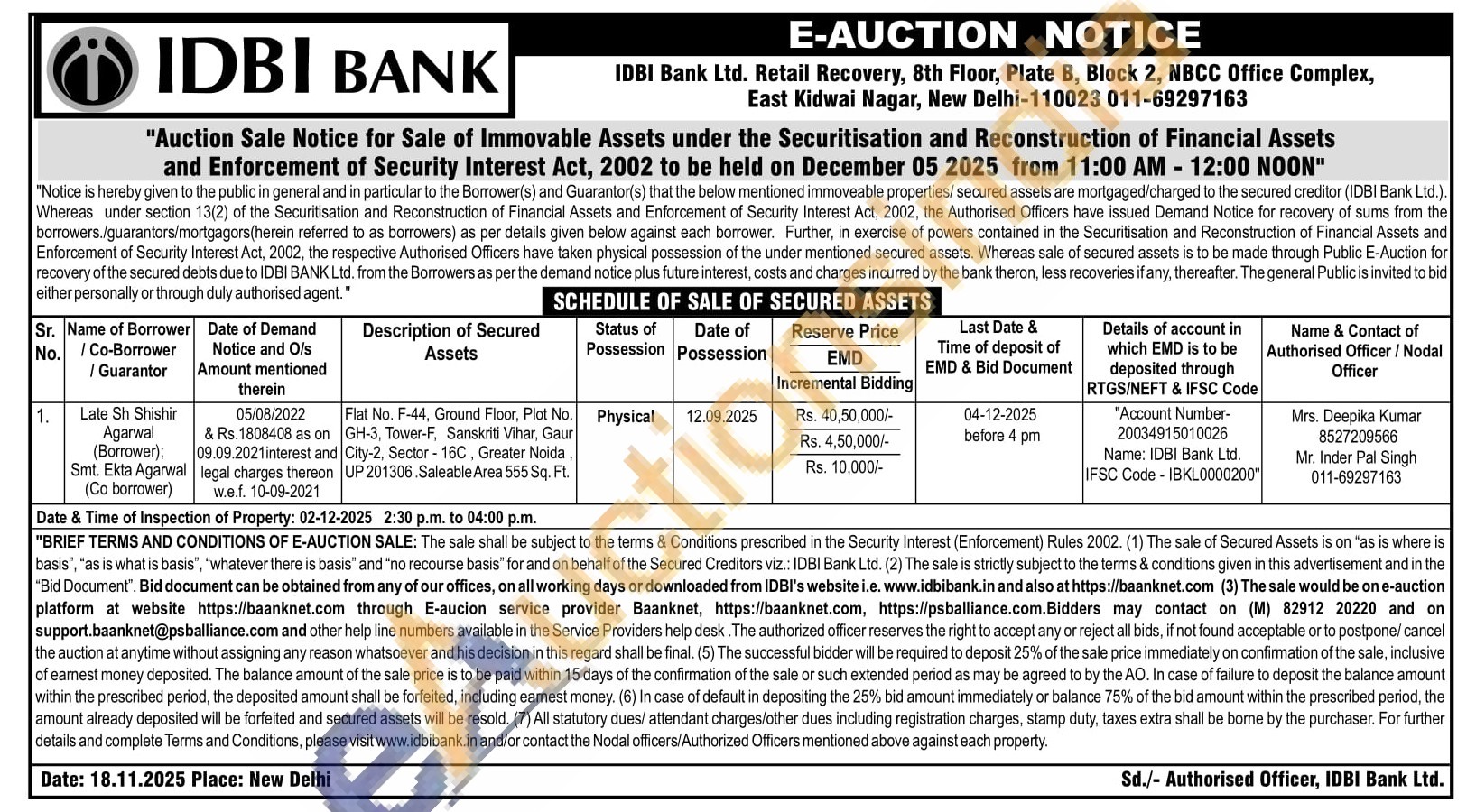 Flat No. F-44, Ground Floor, Plot No. GH-3. Tower-F. Sanskriti Vihar, Gaur City-2, Sector-16C, Greater Noida UP 201306. Saleable Area 555 Sq. Ft