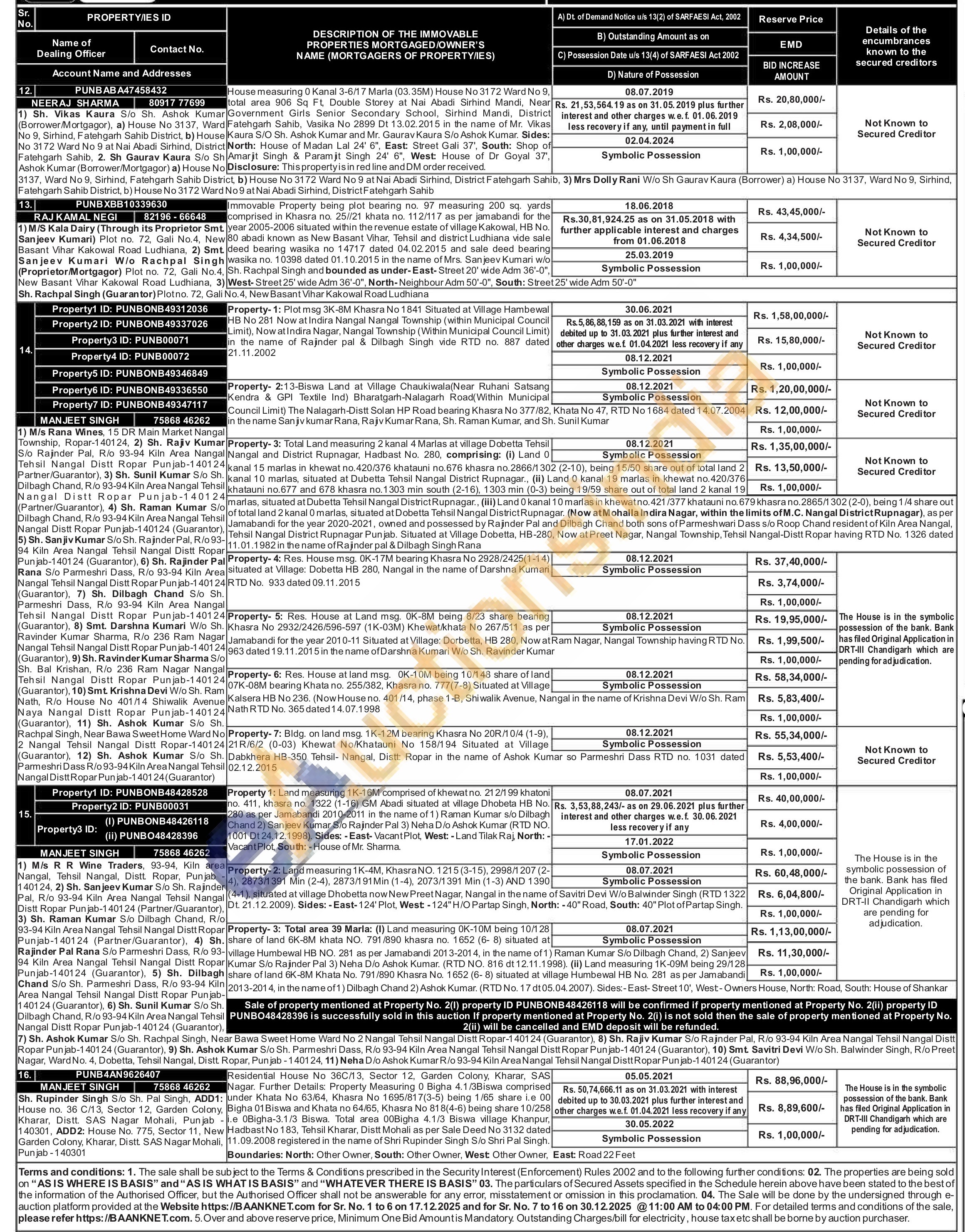 Property-1: Plot msg 3K-8M Khasra No 1841 Situated at Village Hambewal HB No 281 Now at Indira Nangal Nangal Township (within Municipal Council Limit), Now at Indira Nagar, Nangal Township (Within Municipal Council Limit) in the name of Rajinder pal & Dilbagh Singh vide RTD no. 887 dated 21.11.2002