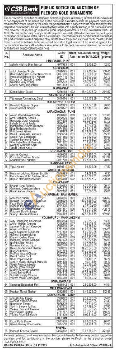 CSB Bank Gold Auctions Auction in Pune