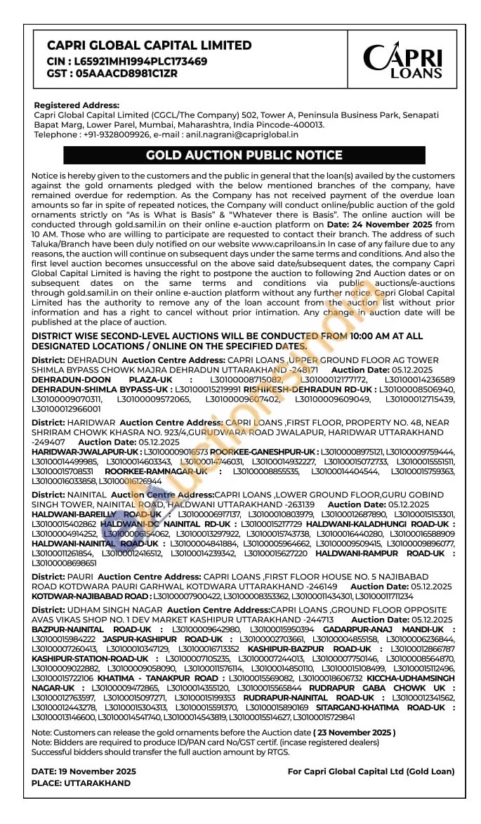Capri Global Capital Limited Gold Auctions Auction in Dehradun