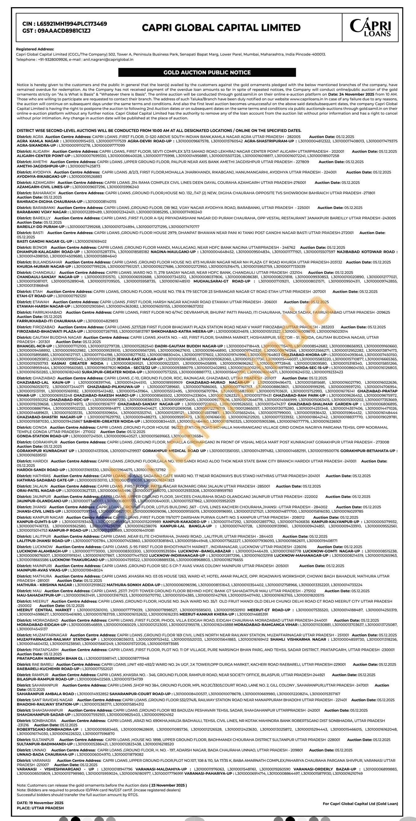 Capri Global Capital Limited Gold Auctions Auction in Agra
