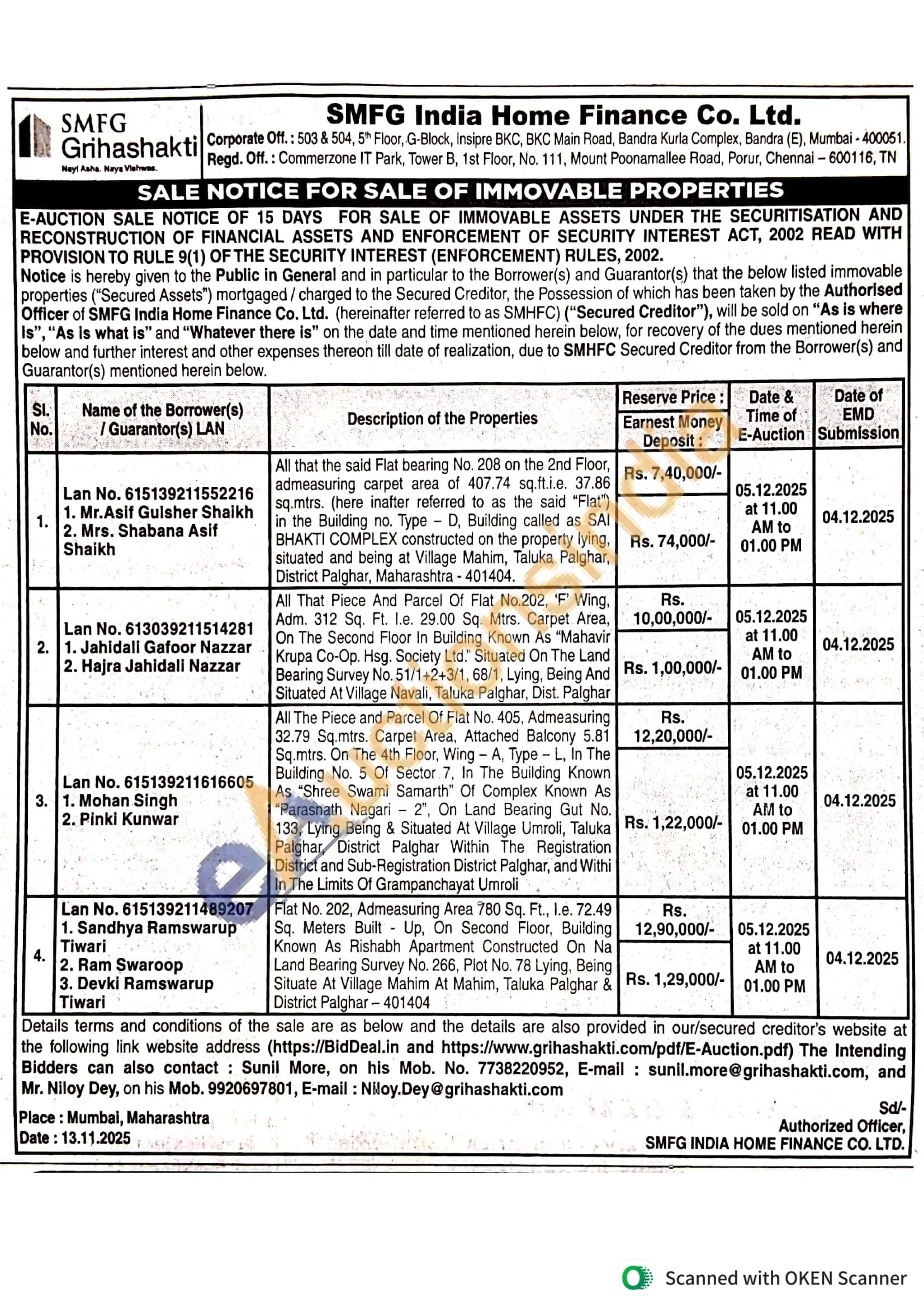 Contact: Sunil More, on his Mob. No. 7738220952, E-mail: sunil.more@grihashakti.com, and Mr. Niloy Dey, on his Mob. 9920697801, E-mail: Niloy.Dey@grihashakti.com