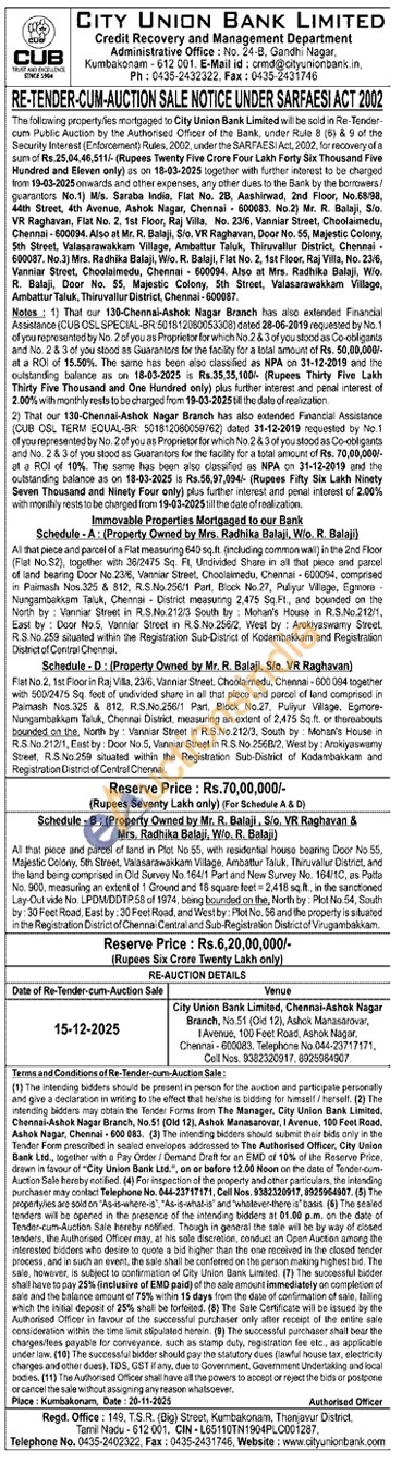 All that piece and parcel of a Flat measuring 640 sq.ft. (including common wal) in the 2nd Floor (Flat No.S2), together with 36/2475 Sq. Ft, Undivided Share in all that piece and parcel of land bearing Door No.23/6, Vanniar Street, Choclaimedu, Chennai-600054, comprised in Paimash Nos.325 & 812, R.S.No.256/1 Part, Block No. 27, Puliyur Village, Egmore-Nungambakkam Taluk, Chennai District measuring 2.475 Sq. Ft, and bounded on the North by: Vanniar Street in R.S.No.212/3 South by: Mohan's House in R.S.No.212/1, East by: Door No.5, Vanniar Street in RS.No 256/2, West by: Arokiyaswamy Street. R.S.No.259 situated within the Registration Sub-District of Kodambakkam and Registration District of Central Chennai.