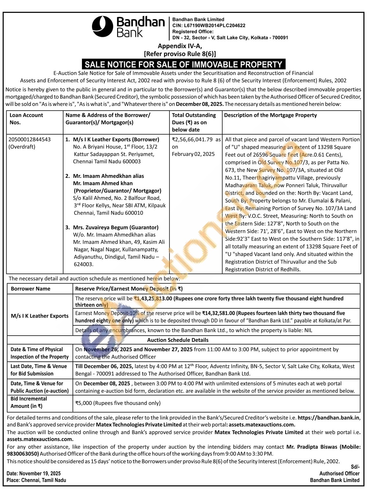 All that piece and parcel of vacant land Western Portion of "U" shaped measuring an extent of 13298 Square Feet out of 26596 Square Feet (Acre.0.61 Cents), comprised in Old Survey No. 107/3, as per Patta No. 673, the New Survey No. 107/3A, situated at Old No.11, Theerthagiriyampattu Village, previously Madhavaram Taluk, now Ponneri Taluk, Thiruvallur District, and bounded on the: North By: Vacant Land, South By: Property belongs to Mr. Elumalai & Palani, East By: Remaining Portion of Survey No. 107/3A Land West By: V.O.C. Street, Measuring: North to South on the Eastern Side: 127'8", North to South on the Western Side: 71', 28'6", East to West on the Northern Side:92'3" East to West on the Southern Side: 117'8", in all totally measuring an extent of 13298 Square Feet of "U "shaped Vacant land only. And situated within the Registration District of Thiruvallur and the Sub Registration District of Redhills.