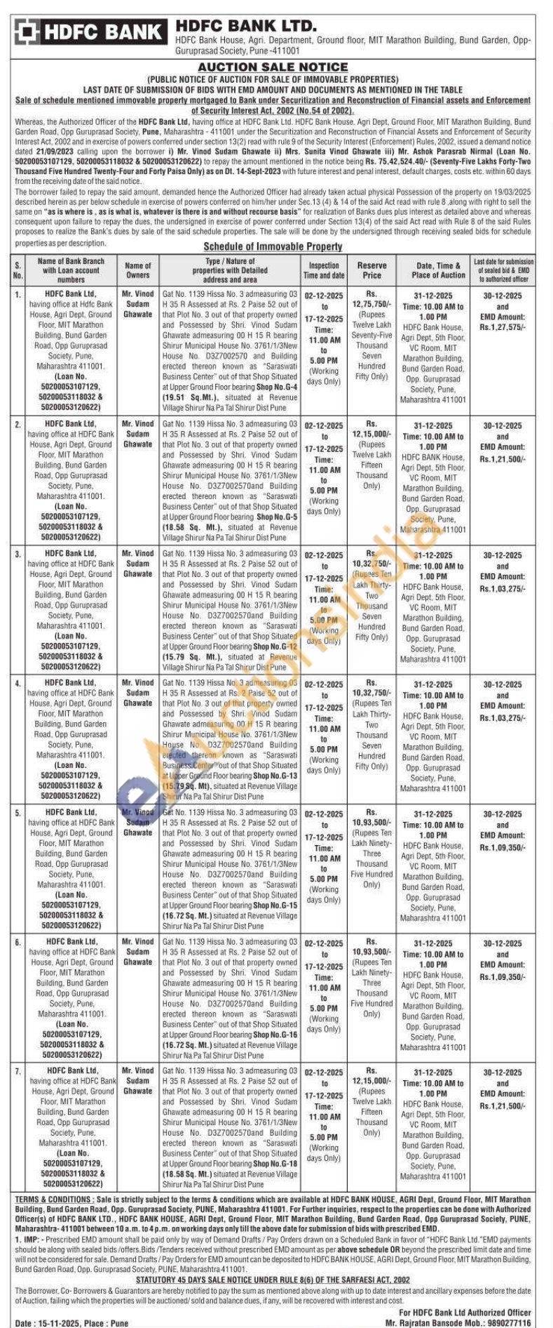 Gat No. 1139 Hissa No. 3 admeasuring 03 H 35 R Assessed at Rs. 2 Paise 52 out of that Plot No. 3 out of that property owned and Possessed by Shri. Vinod Sudam Ghawate admeasuring 00 H 15 R bearing Shirur Municipal House No. 3761/1/3New House No. D3Z7002570and Building erected thereon known as "Saraswati Business Center" out of that Shop Situated at Upper Ground Floor bearing Shop No.G-13 (15.79 Sq. Mt), situated at Revenue Village Shirur Na Pa Tal Shirur Dist Pune