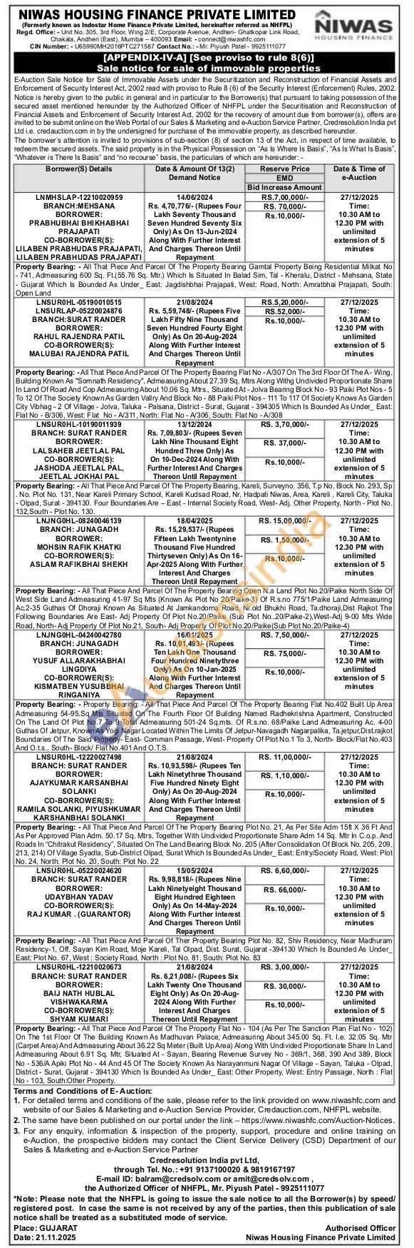 Property Bearing: Property Bearing: All That Piece And Parcel Of The Property Bearing Flat No.402 Built Up Area Admeasuring 54-95.Sq Mts Situated On The Fourth Floor Of Building Named Radhekrishna Apartment, Constructed On The Land Of Plot No.7 To 9 Total Admeasuring 501-24 Sq.mts. Of R.s.no. 68/Paike Land Admeasuring Ac. 4-00 Guthas Of Jetpur, Known As Yogi Nagar Located Within The Limits Of Jetpur-Navagadh Nagarpalika, Ta.jetpur, Dist.rajkot Boundaries Of The Said Property-East- Comman Passage, West- Property Of Plot No.1 To 3, North- Block/Flat No.403 And O.t.s., South- Block/Flat No.401 And O.T.S.