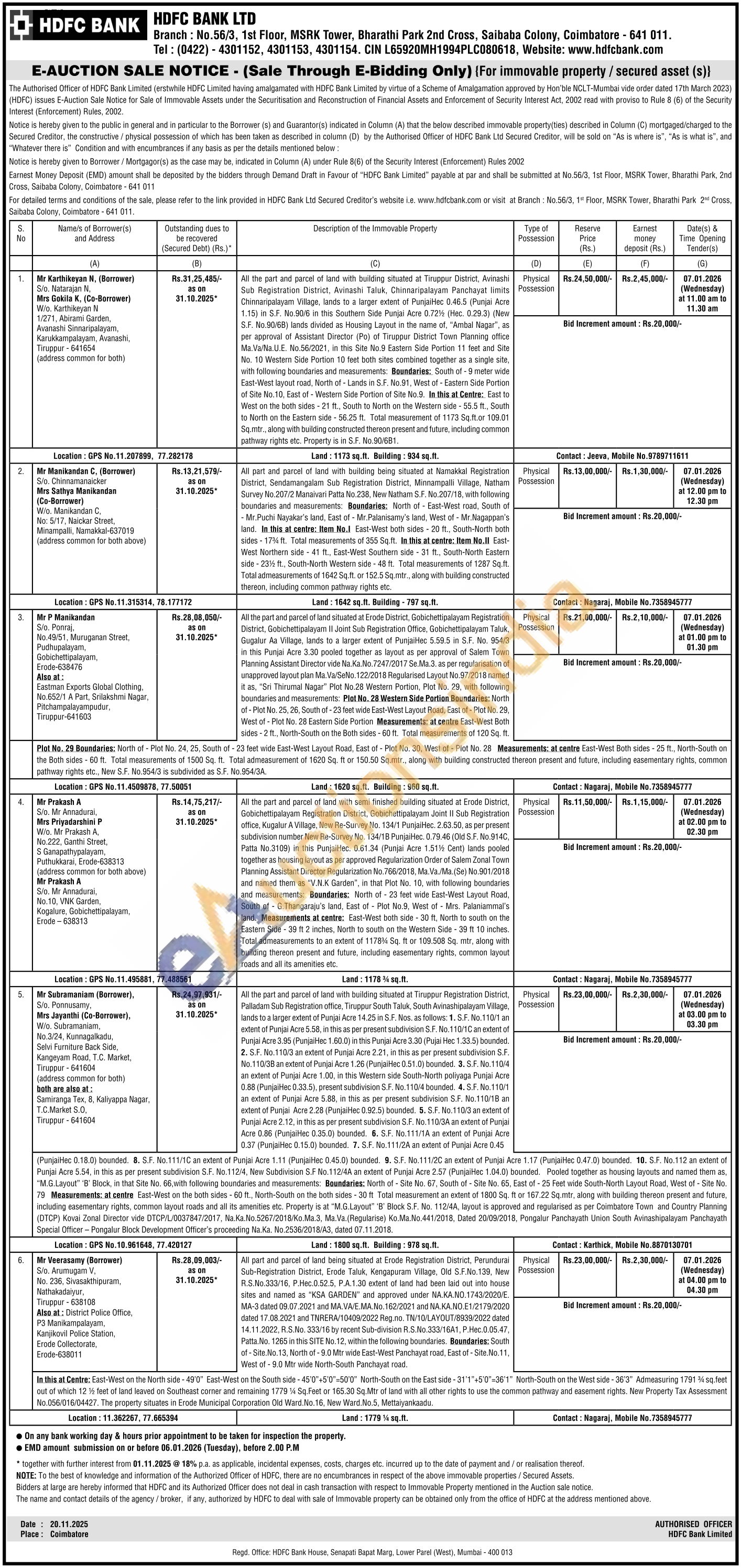 All the part and parcel of land with semi finished building situated at Erode District, Gobichettipalayam Registration District, Gobichettipalayam Joint II Sub Registration office, Kugalur A Village, New Re-Survey No. 134/1 PunjaiHec. 2.63.50, as per present subdivision number New Re-Survey No. 134/18 PunjaiHec. 0.79.46 (Old S.F. No.914C, Patta No.3109) in this PunjaiHec. 0.61.34 (Punjai Acre 1.51% Cent) lands pooled. together as housing layout as per approved Regularization Order of Salem Zonal Town Planning Assistant Director Regularization No.766/2018, Ma.Va/Ma. (Se) No.901/2018 and named them as "V.N.K Garden", in that Plot No. 10, with following boundaries and measurements: Boundaries: North of 23 feet wide East-West Layout Road, South of G.Thangaraju's land, East of Plot No.9, West of Mrs. Palaniammal's land. Measurements at centre: East-West both side 30 ft, North to south on the Eastern Side-39 ft 2 inches, North to south on the Western Side-39 ft 10 inches. Total admeasurements to an extent of 1178% Sq. ft or 109.508 Sq. mtr, along with building thereon present and future, including easementary rights, common layout roads and all its amenities etc.